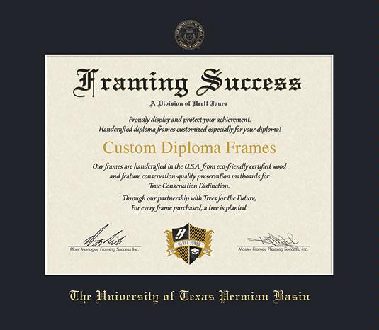 The University of Texas Permian Basin Diploma (8/20 to Present) Frame with Dark Black Mat and Gold Embossing