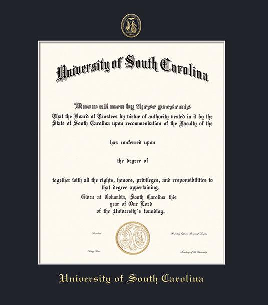 University of South Carolina Diploma (6/18 to Present) Frame with Dark Black Mat and Gold Embossing