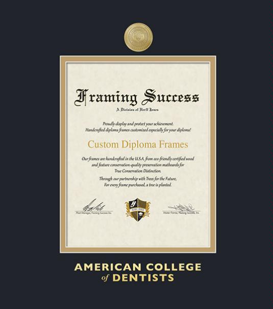 American College of Dentists Certificate - Local Awards Frame with Medallion and Black and Gold Double Mat and Gold Embossing
