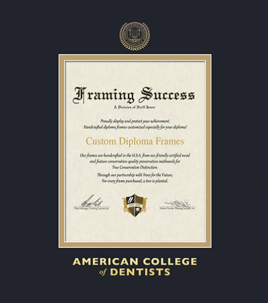 American College of Dentists Certificate - Local Awards Frame with Black and Gold Double Mat and Gold Embossing