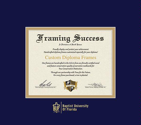 Baptist University of Florida Diploma (11/23 to Present) Frame with Navy Blue and Gold Double Mat and Gold Embossing