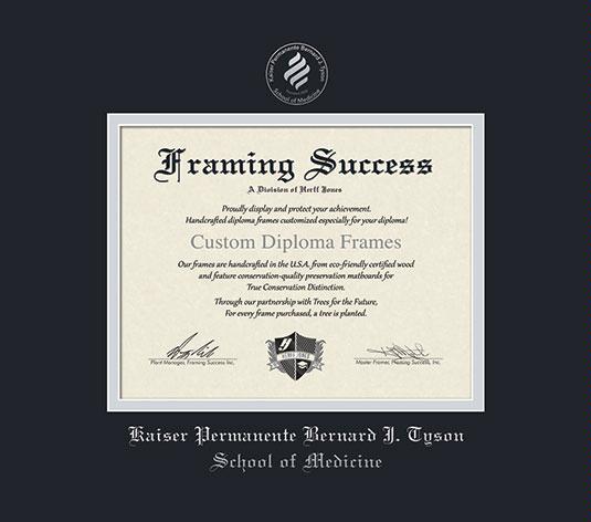 Kaiser Permanente Bernard J. Tyson School of Medicine Diploma Frame with Black and Silver Double Mat and Silver Embossing