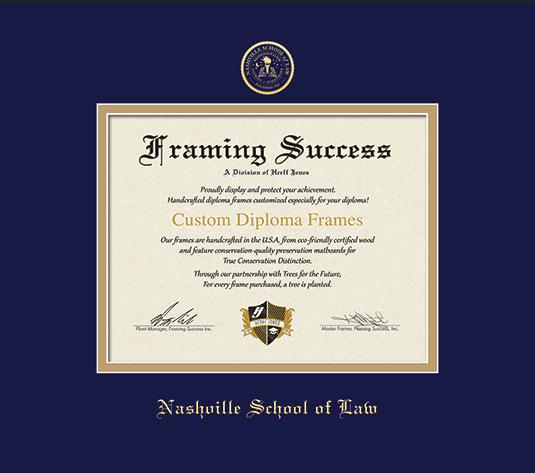 Nashville School of Law Diploma Frame with Navy Blue and Gold Double Mat and Gold Embossing