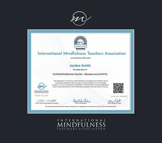 International Mindfulness Teachers Association Certificate Frame with Black and Sky Blue Double Mat and Silver Embossing
