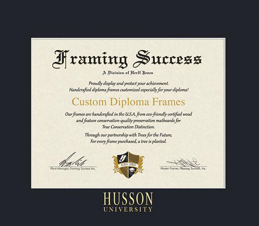 Husson University Diploma - BA/MA Frame with Dark Black Mat and Gold Embossing