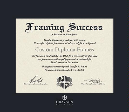 Grayson College Diploma Frame with Dark Black Mat and Silver Embossing