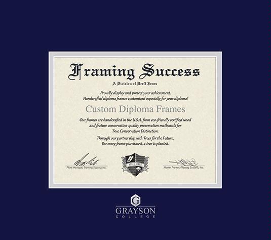Grayson College Diploma Frame with Navy Blue and Silver Double Mat and Silver Embossing