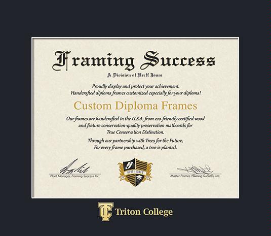 Triton College Diploma Frame with Dark Black Mat and Gold Embossing