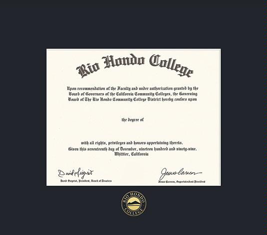 Rio Hondo College Diploma (2024 to Present) Frame with Black Mat and Gold Embossing