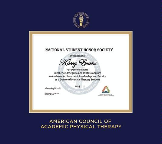 American Council of Academic Physical Therapy Certificate - Honor Society Frame with Navy Blue and Gold Double Mat and Gold Embossing