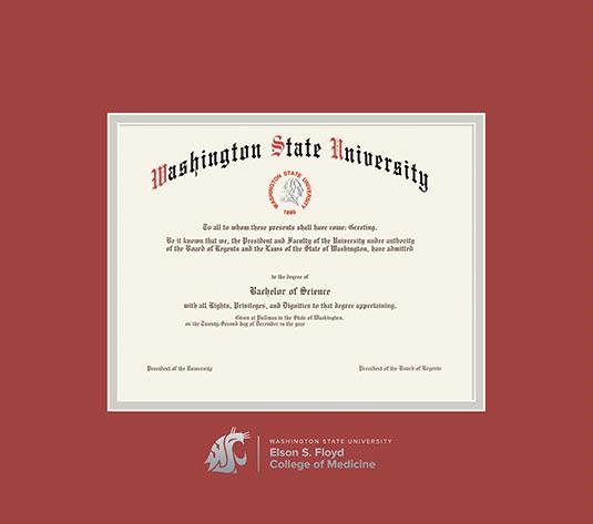 Washington State University Diploma - Medical Frame with Red and Gray Double Mat and Silver Embossing