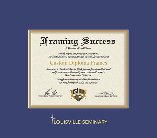 Louisville Presbyterian Seminary College Diploma Frame with Royal Blue and Gold Double Mat and Gold Embossing