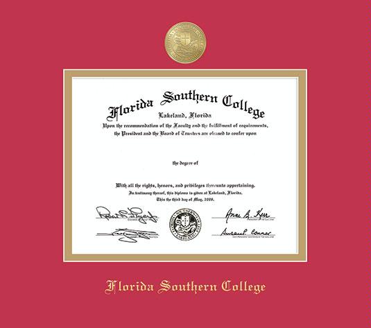 Florida Southern College Diploma - BA/MA Frame with Medallion and Red and Gold Double Mat and Gold Embossing
