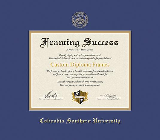 Columbia Southern University Diploma (11 x 14 upgraded size) Frame with Royal Blue and Gold Double Mat and Gold Embossing