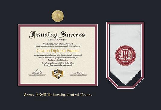Texas A&M University-Central Texas Diploma Frame with Medallion and Stole Cut-out and Black and Maroon Double Mat and Gold Embossing