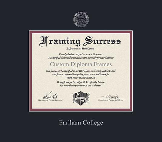 Earlham College Diploma Frame with Black and Maroon Double Mat and Silver Embossing