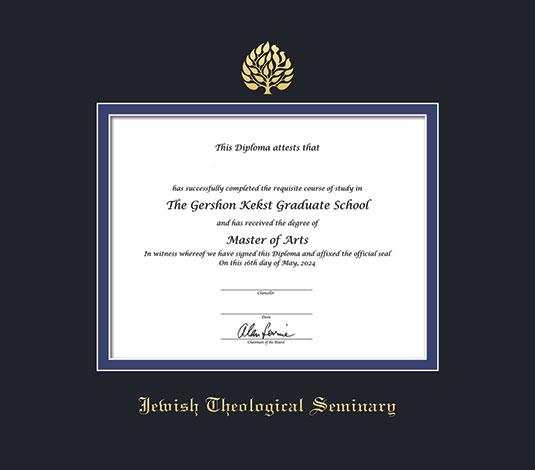 The Jewish Theological Seminary Diploma - MA/Doc/Rabbinical Frame with Black and Royal Blue Double Mat and Gold Embossing