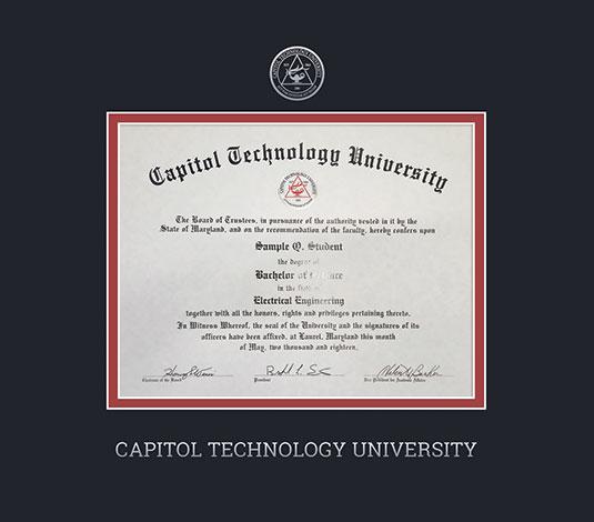Capitol Technology University Diploma Frame with Black and Red Double Mat and Silver Embossing