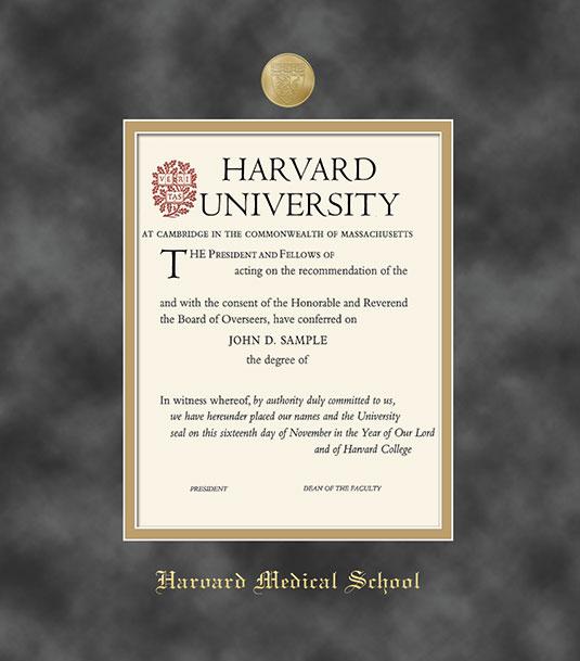 Harvard University Diploma - Medical Frame with Grey Suede and Gold Double Mat and Medallion