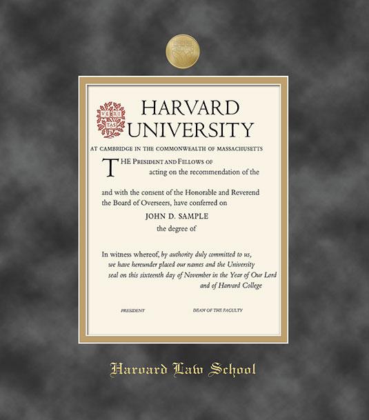 Harvard University Diploma - Law Frame with Grey Suede and Gold Double Mat and Medallion