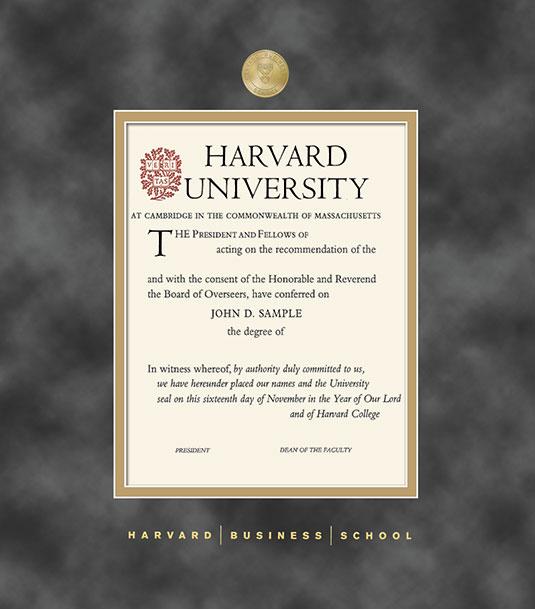 Harvard University Diploma - Executive Education Frame with Grey Suede and Gold Double Mat and Medallion