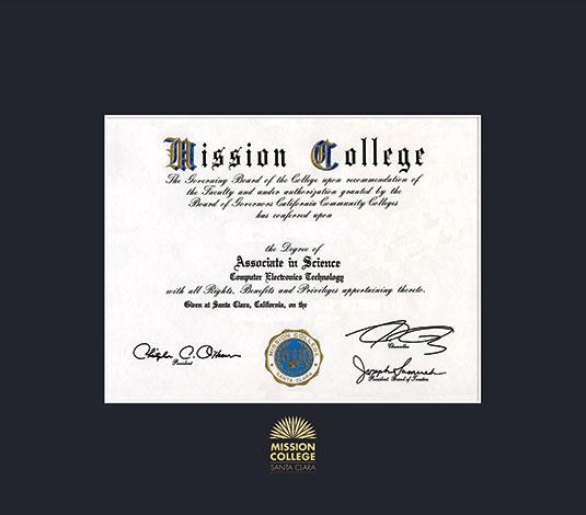Mission College Diploma (2025 to Present) Frame with Black Mat and Gold Embossing