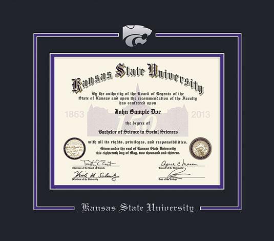 Kansas State University Diploma - BA/MA and (Pre 2023) PhD Frame with Black and Purple Double Mat and Silver Embossing