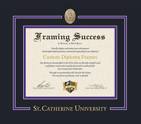 St. Catherine University Diploma - MA/PhD (6/25 to Present) Frame with Medallion and Black and Purple Double Mat and Gold Embossing