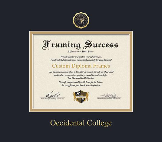 Occidental College Diploma (2000 to Present) Frame with Black and Gold Double Mat and Gold Embossing