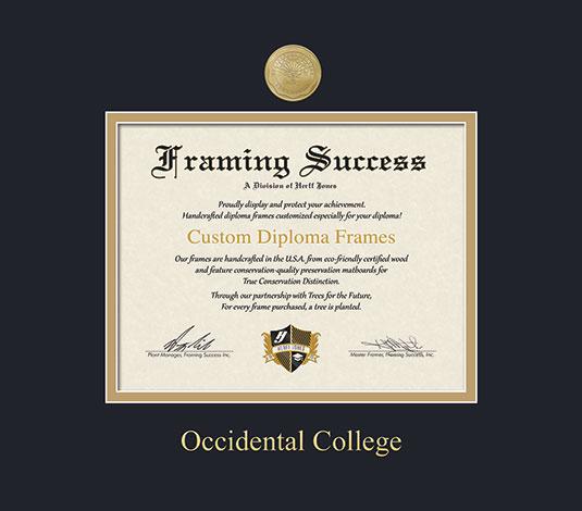 Occidental College Diploma (2000 to Present) Frame with Medallion and Black and Gold Double Mat and Gold Embossing