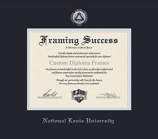 National Louis University Diploma (9/12 to Present) Frame with Black and Silver Double Mat and Silver Embossing