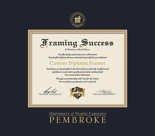 University of North Carolina Pembroke Diploma - BA Frame with Black and Gold Double Mat and Gold Embossing