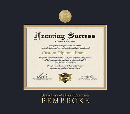 University of North Carolina Pembroke Diploma - MA Frame with Medallion and Black and Gold Double Mat and Gold Embossing