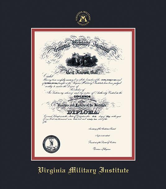 Virginia Military Institute Diploma (1/14 to Present) Frame with Black and Red Double Mat and Gold Embossing