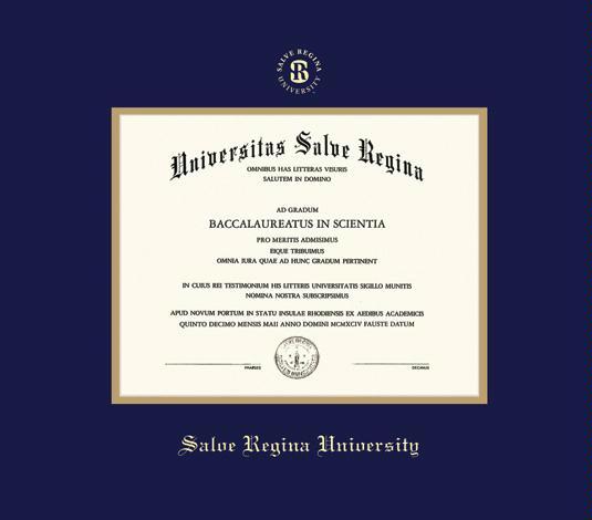 Salve Regina University Diploma (7/13 to Present) Frame with Navy Blue and Gold Double Mat and Gold Embossing