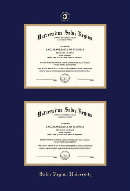 Salve Regina University Double Diploma (7/13 to Present) Frame with Navy Blue and Gold Double Mat and Gold Embossing
