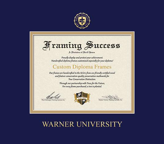 Warner University Diploma - Bachelors Frame with Navy Blue and Gold Double Mat and Gold Embossing