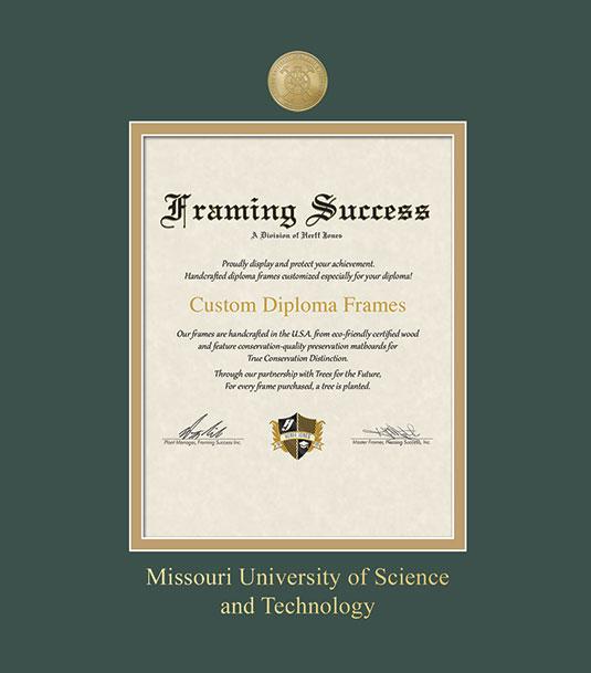Missouri University of Science and Technology Diploma - PhD Frame with Medallion and Green and Gold Double Mat and Gold Embossing