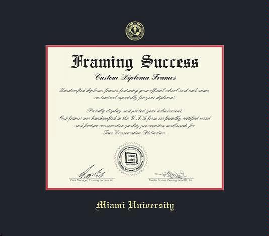 Miami University Diploma Frame with Black and Red Double Mat and Gold Embossing