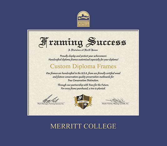 Merritt College Diploma Frame with Royal Blue Mat and Gold Embossing
