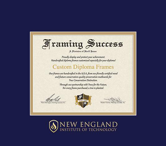 New England Institute of Technology Diploma - Doctorate Frame with Navy Blue and Gold Double Mat and Gold Embossing