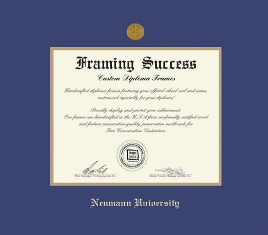 Neumann University Diploma (6/09 to Present) with Medallion Frame, Featuring a Royal Blue and Gold Double Mat with Gold Embossing