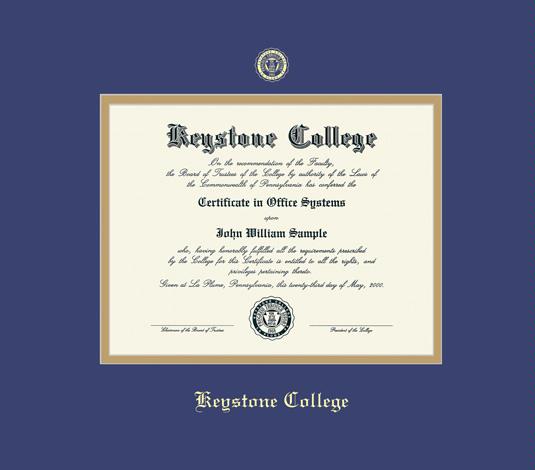 Keystone College Diploma Frame with Royal Blue and Gold Double Mat and Gold Embossing