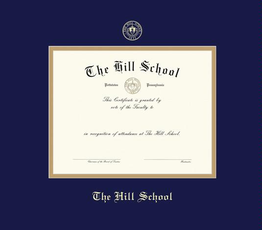 The Hill School Diploma Frame with Navy Blue and Gold Double Mat and Gold Embossing