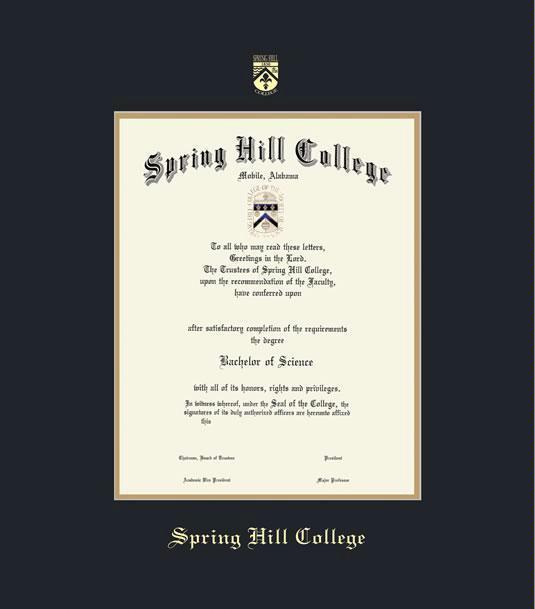 Spring Hill College Diploma Frame with Black and Gold Double Mat and Gold Embossing