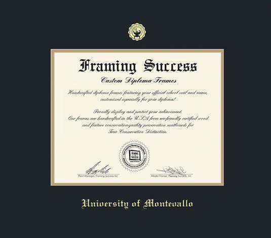 University of Montevallo Diploma Frame with Black and Gold Double Mat and Gold Embossing