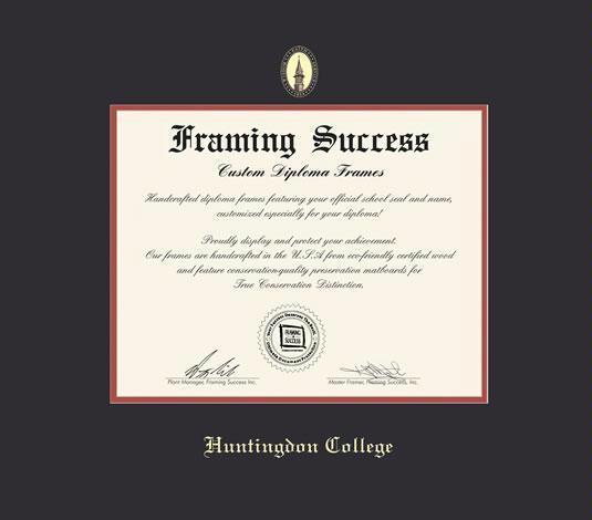 Huntingdon College Diploma Frame with Black and Red Double Mat and Gold Embossing