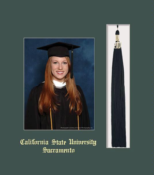 California State University, Sacramento 7x5 Photo with Tassel Cut-out Frame Featuring a Green Mat and Gold Embossing