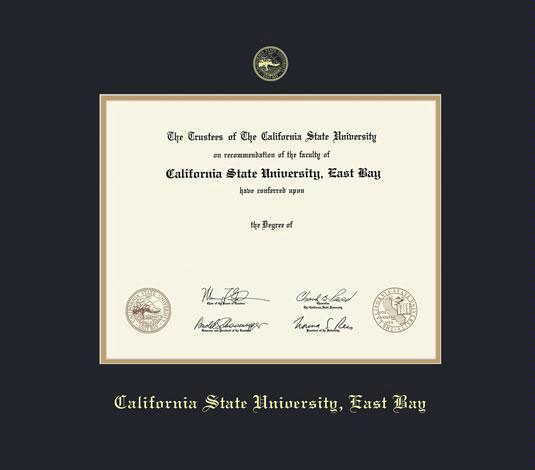California State University, Hayward/East Bay Diploma - East Bay Frame with Black and Gold Double Mat and Gold Embossing