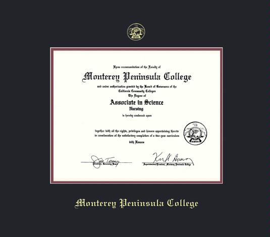 Monterey Peninsula College Diploma (8/09 to Present) Frame with Black and Maroon Double Mat and Gold Embossing